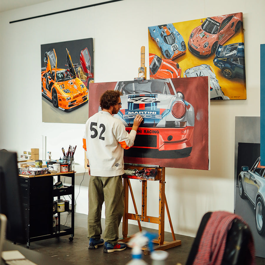 “To me the car is a tribute to the toys we played with when we were kids.” Says Manu Campa, the Madrid-based artists with more than his fair share of the automotive in his portfolio. In a lifetime of painting, Manu has learned to recreate curves and reflections in incredible detail, including those of his own 1974 Porsche, which instigated this particular visit to his studio.