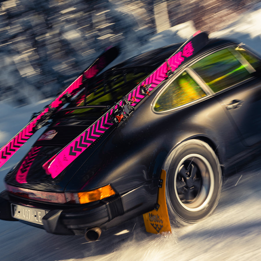 Camille Jaccoux has been living that relationship his whole life. As the founder of the legendary ski brand Black Crows, he’s built a universe around what he calls "ski culture ad libitum," and the mountains above Chamonix aren't just a backdrop, they're essentially the whole point. In that story, cars have always been playful part of it; he’s built a pink Toyota Celica, and Nissan Cubes with yellow-tinted windows, taking elements from their ski goggles. Their visual identity was built in collaboration with Yorgo Tloupas and it’s instantly-recognisable. For them, any surface is a canvas - not just the pistes - and Jaccoux has never needed much convincing to make something cool.