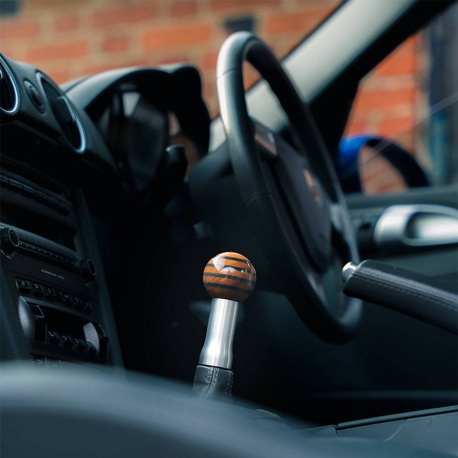 “The Cayman was an impulsive purchase” said Andre as we drove through the West Sussex countryside. “The ultimate goal is a Carrera GT, so I’ve included a touch in the Cayman to remind me of that goal,” he explains, pointing to the Carrera GT-inspired shifter knob made of old skate boards.